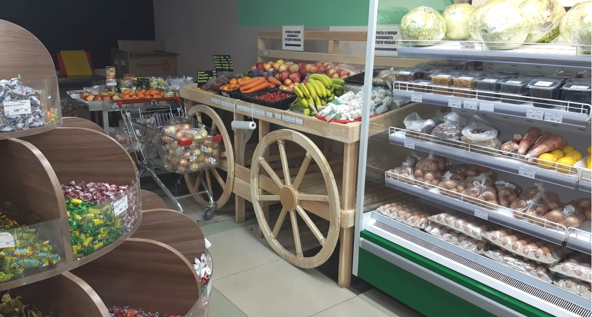 Комплексное оснащение супермаркета в г.Вилюйск (Якутия). Поставка стеллажного, холодильного оборудования, POS-материалов, тележек, корзинок, сумочных и т.д.
