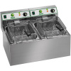 Фритюрница электрическая настольная, с 2 ваннами объёмом 2х10л, 2 корзинами, вместимость фритюра 2х8л, производительность 2х8кг/ч, каждая ванна мощностью 3000Вт имеет независимое электрическое подключение.
