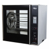 Электронная панель управления с тачскрином. Температурный режим +50-250С, Производительность за 1 загрузку 40 шт. Количество корзин 8 шт. Количество спиц для кур 8 шт. Вместимость спицы 5 тушек. Вентилятор конвекции. Вентилятор принудительного охлаждения камеры. 4 режима работы гриля. Подсветка в камере. Стеклянные двери гриля с энергосберегающим покрытием для доступа в камеру гриля с двух сторон.