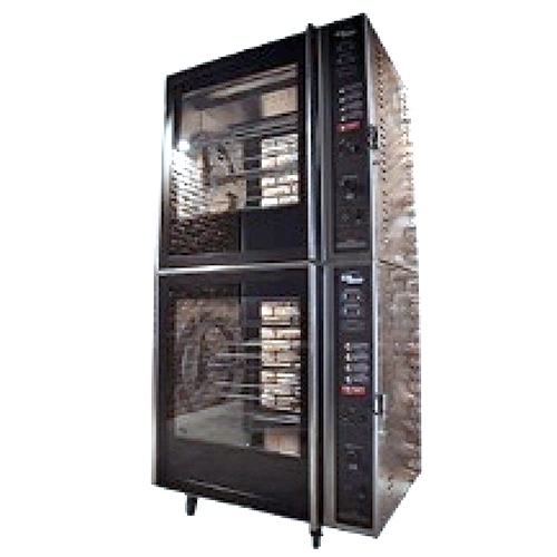 Установленные в единую колонну гриль-гриль. Гриль нового поколения, 8+8 спиц для одновременного приготовления 48 тушек 1.3-1,8 кг, 8+8 корзин для кур и субпродуктов(опция), 8+8 угловых шампуров для кур (опция), возможно одновременное использование корзин и спиц для приготовления, мощные вентиляторы конвекции, яркая галогенная подсветка камер(600+600 Вт), 3 режима приготовления, термощуп, электронная панель управления 1 уровня, сквозной доступ в камеру грилей (2 двери), стекла грилей с теплоотражающим покрытием. Терморстат 50-250 С. Время приготовления кур (24х1,3 кг): 70 мин. Установлены в единую колонну, нижний гриль на колесах со стопорами.