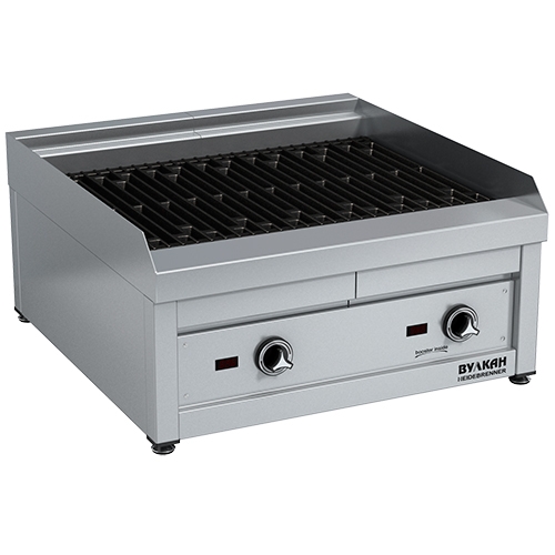 Мощность конфорок 2х4,5 кВт. Материал зоны нагрева: чугунная решетка, камни вулканического происхождения.
