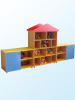 изготовлена из ЛДСП, торцы облицованы кромкой ПВХ 2 мм. Состоит из трех секций: в боковых секциях по 2 открытые и закрытые полки, средняя секция имеет 10 открытых ячеек и пикообразную надстройку. Стенка снабжена ножками-опорами регулируемыми по высоте, на дверях установлены ручки-кнопки