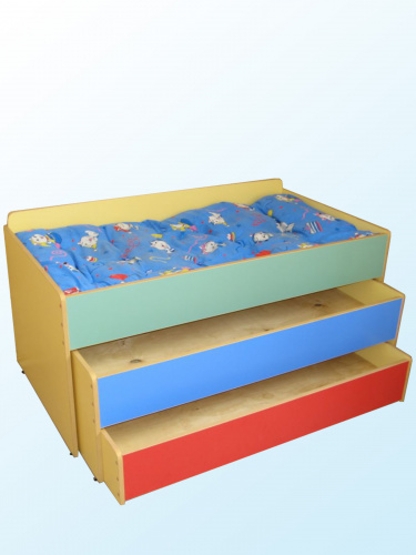 изготовлена из ЛДСП, все углы скруглены, торцы облицованы кромкой ПВХ 2 мм, ярусы кроватей имеют роликовые опоры, расстояние между ярусами позволяет при складывании кровати не убирать матрац и подушку