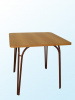 металлокаркас состоит из двух пар дуг сваренных в области ножек из трубы диаметром 22 мм и окрашен порошково-полимерной краской. Столешница изготовлена из ДСП с пластиковым покрытием, цвет бук, углы закруглены, торцы облицованы кромкой ПВХ 2 мм