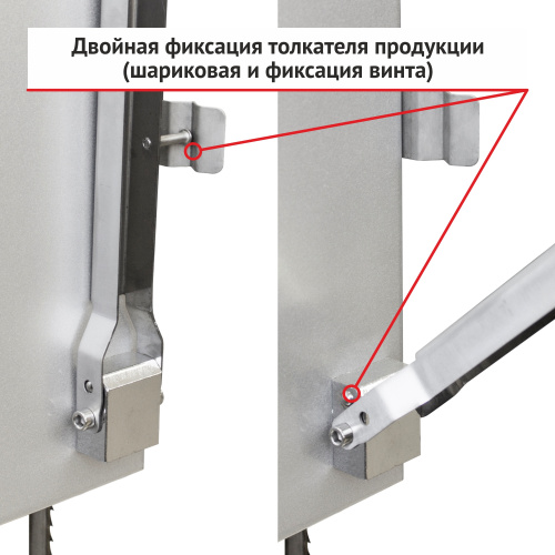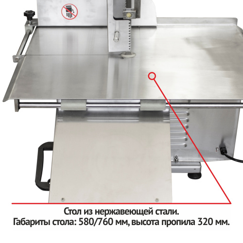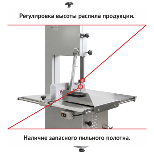 Пила ленточная для мяса RoalMeat J310 подходит для разделки свежих или замороженных мясных продуктов, в том числе с костями. Изготовлена из нержавеющей стали высокого качества. Корпус крашеный металл. Рабочий стол из нержавеющей стали. Наличие ограничительного борта на обоих направляющих колесах ленточного полотна. Шкала ширины разреза продукции и пластина с двойной фиксацией. Регулировка высоты распила. Подвижной (откидной) подающий элемент продукции. Технологичесткое отверстие для подложки сбора мясо-костных опилок. Внутреняя регулировка верхнего колеса по горизонтали. Очистители пильного полотна сверху и снизу. Довойная фиксация толкателя продукции (шариковая и фиксация винта). Наличие запасного пильного полотна.Характеристики: