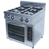Плита газовая оснащена 4 профессиональными горелками класса Heavy Duty (3 горелки по 6,5 кВт, 1 - 9 кВт), газовой духовкой из нерж.стали с 4 уровнями для GN 2/1, дверь с закаленным стеклом. Духовой шкаф с таймером 120 мин, подсветкой и стрелочным термометром, сверху горелка 4,5 кВт, снизу горелка 4,5 кВт. Управление горелками с помощью 2-х газовых термоcтатов.