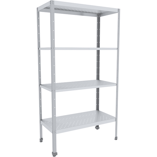 Ножки стеллажа снабжены регулирующими опорами, позволяющие компенсировать неровности пола при установке.