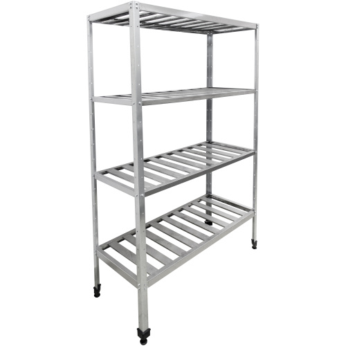 Стеллаж имеет разборную конструкцию и состоит из четырёх стоек и четырёх полок.