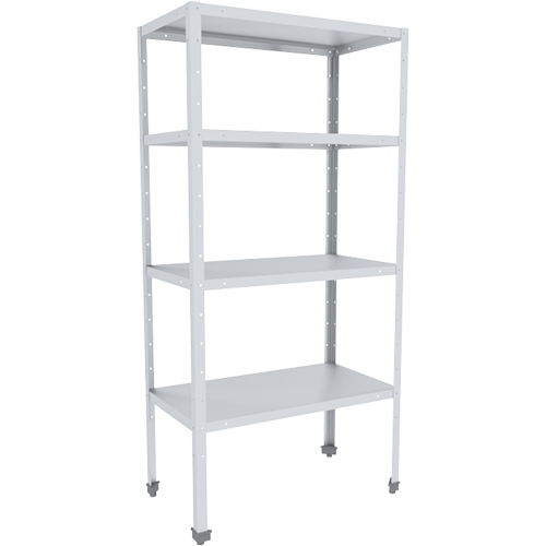 Ножки стеллажа снабжены регулирующими опорами, позволяющие компенсировать неровности пола при установке.