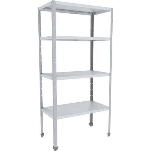 Ножки стеллажа снабжены регулирующими опорами, позволяющие компенсировать неровности пола при установке.