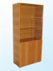изготовлен из ЛДСП, торцы облицованы кромкой ПВХ 0,4 мм. В верхней секции шкафа 3 ниши закрытые стеклянными дверями, в нижней - 2 ниши закрыты глухими дверями. На дверях установлены ручки-скобы металлические. Шкаф снабжен ножками-опорами регулируемыми по высоте