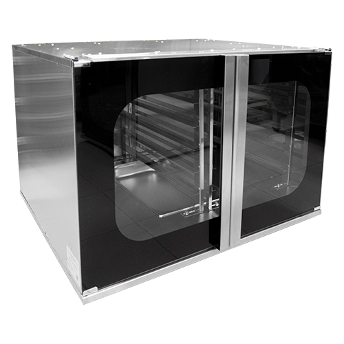 Корпус и камера шкафа расстоечного выполнены из нерж. стали, двери стеклянные.