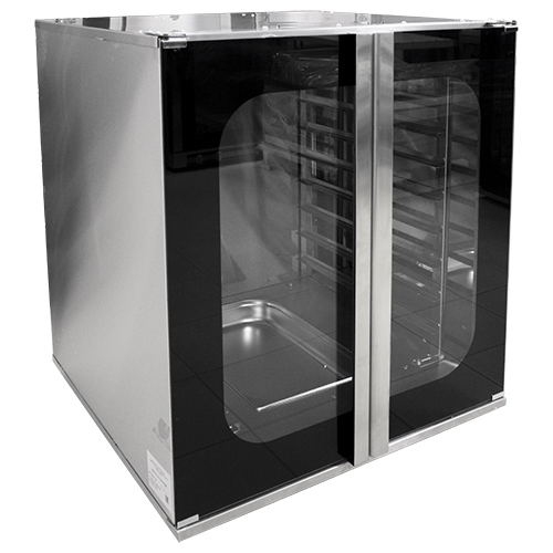 Корпус и камера шкафа расстоечного выполнены из нерж. стали, двери стеклянные.