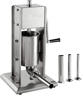 ринцип работы механического вертикального шприца с загрузочным бункером на 12 литров достаточно прост: сырье загружается в бункер, вращением маховика масса проталкивается к цевке и выходит уже непосредственно в оболочку.