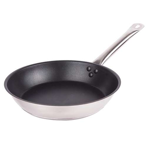 Сковорода из нержавеющей стали с толстым дном и антипригарным покрытием используется для тушения, обжарки.