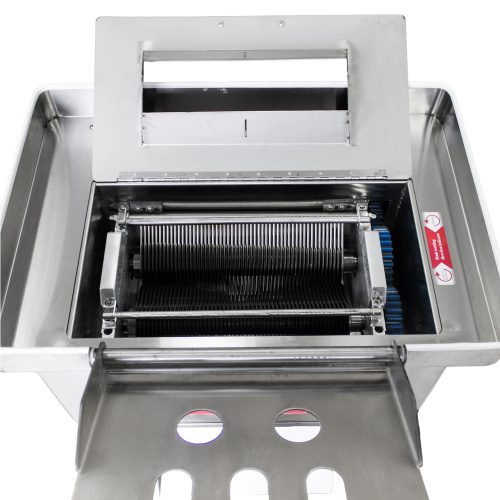 Производственный слайсер АM-1000 предназначен для скоростной профессиональной нарезки на тонкие ломтики различных продуктов: вяленой и сухой рыбы, мяса как свежего, так и вяленого. Аппарат оборудован высококачественными дисковыми ножами, которые обеспечивают ровный, гладкий срез.