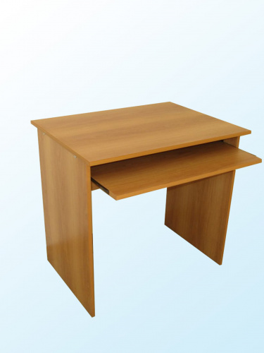 изготовлен из ЛДСП, торцы облицованы кромкой ПВХ 0,4 мм, столешница облицована кромкой ПВХ 2 мм. Стол имеет выдвижную полку под клавиатуру на роликовых направляющих