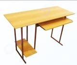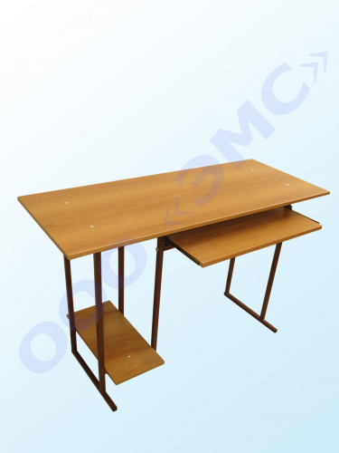 столешница, полки под клавиатуру и системный блок изготовлены из ЛДСП. Торцы столешницы облицованы кромкой ПВХ 2 мм, остальные детали - ПВХ 0,4 мм. Полка под клавиатуру установлена на роликовых направляющих. Металлокаркас выполнен из трубы 20х20мм и окрашен порошково-полимерной краской