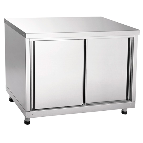 Допустимая нагрузка на столешницу (не более): 100 кг. Допустимая нагрузка на полку (не более): 30 кг. Стол оснащен двумя дверцами-купе и сплошной полкой, регулируемой по высоте. Проем открытой дверки: 530 мм. Все детали изготовлены из нержавеющей стали. Регулируемые по высоте ножки.