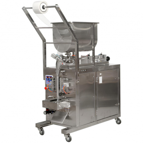 состоит из упаковочной машины и жидкостного поршневого дозатора для хорошо текучих и пастообразных продуктов. Данный комплект предназначен для фасовки и упаковки жидких и пастообразных продуктов в трех шовные плоские пакеты.